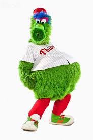 Today, the most famous baseball mascot is the Philly Phanatic.  He's big and green with a horn like honker.  If he looks muppet like, it's because he was designed by Bonnie Erickson, a Jim Henson protege who just happens to have also created Ms. Piggy.  Muppet people understand the concept of puppet equals fun, and putting a live person inside the puppet just makes the fun all the more inventive.  The Phanatic has his own recognizable personality which is just a little naughty.  He loves to annoy the opposing players and any fans in the stadium rooting against the Phillies.  In one game he even got into a wrestling match with Tommy LaSorda, the Dodger Manager at the time.